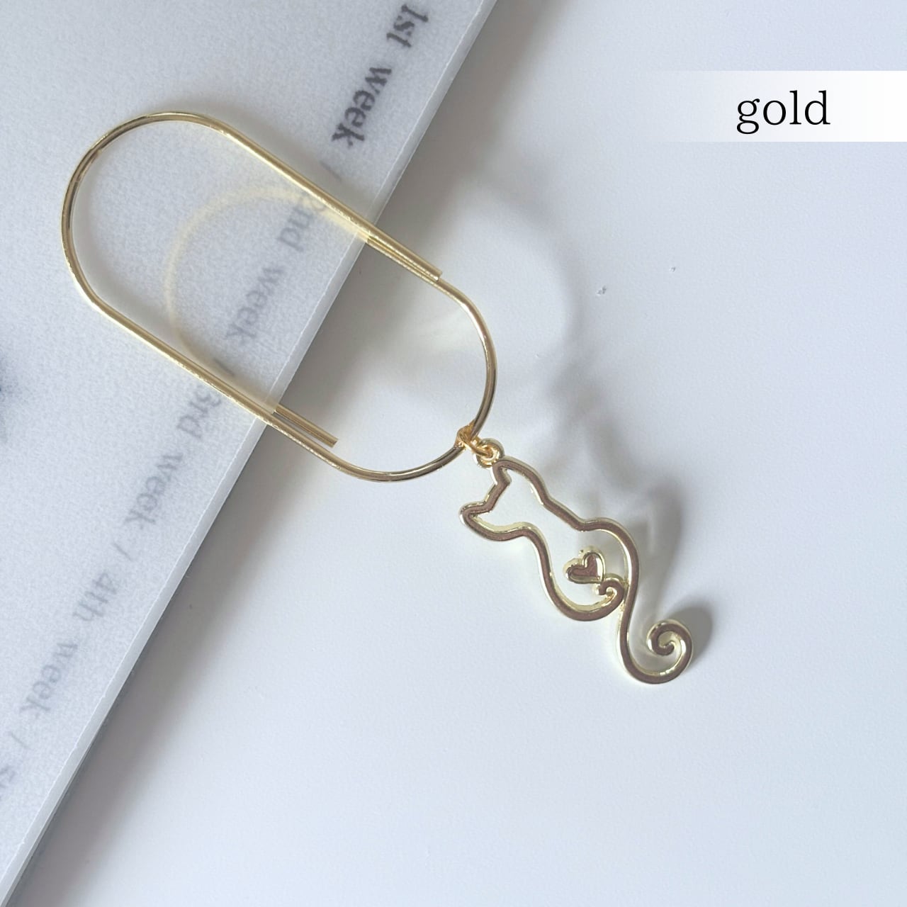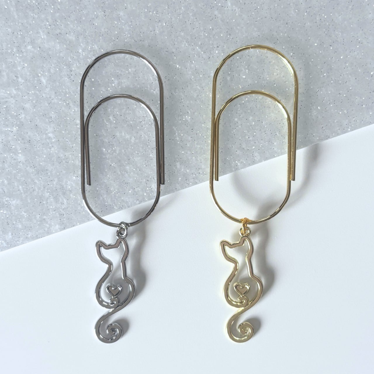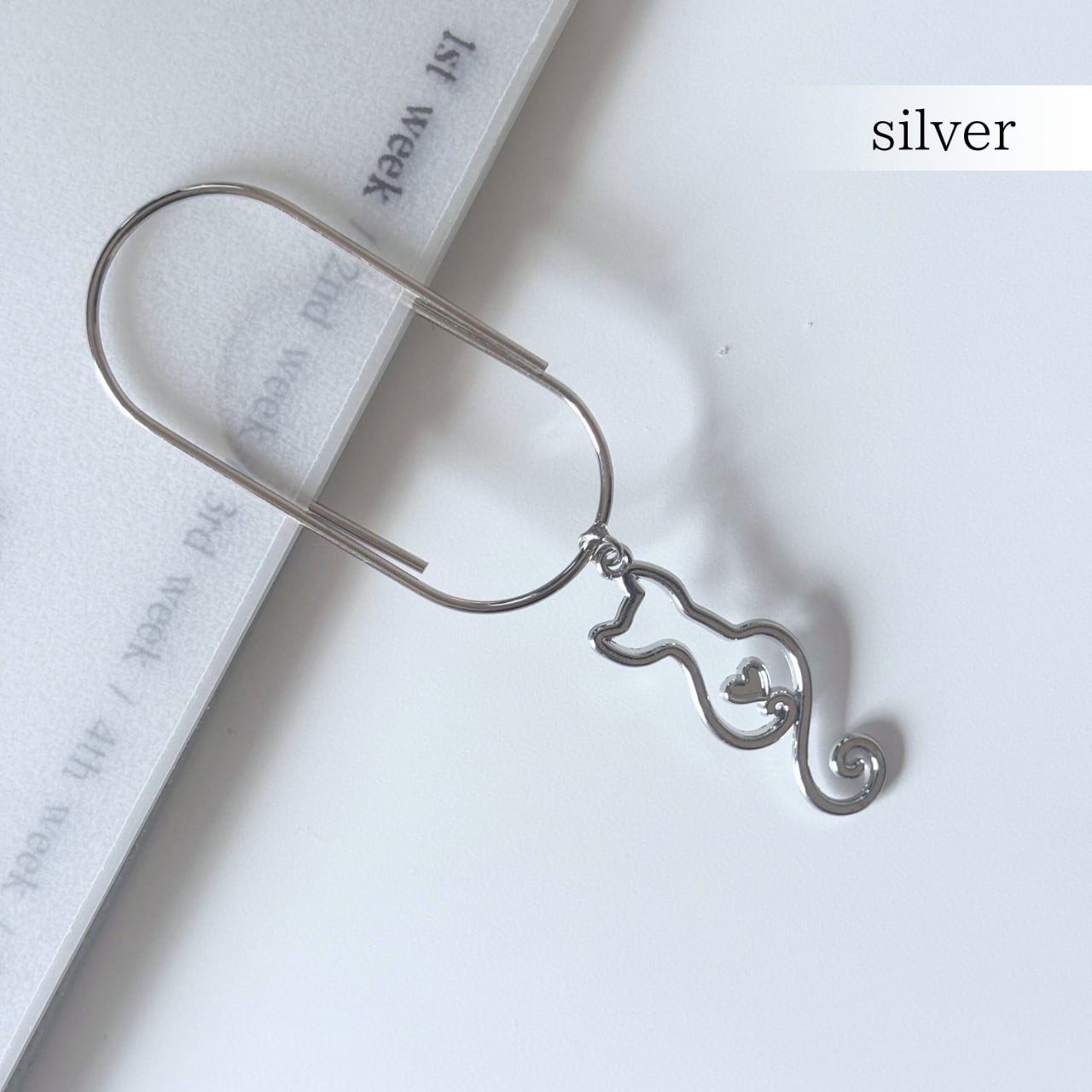 ネコの後ろ姿をかたどったシルエットチャーム付きクリップ。