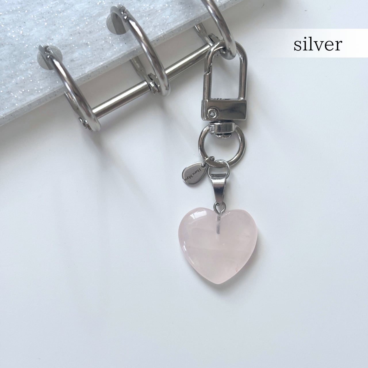 天然石のハート型ローズクオーツを使用。
