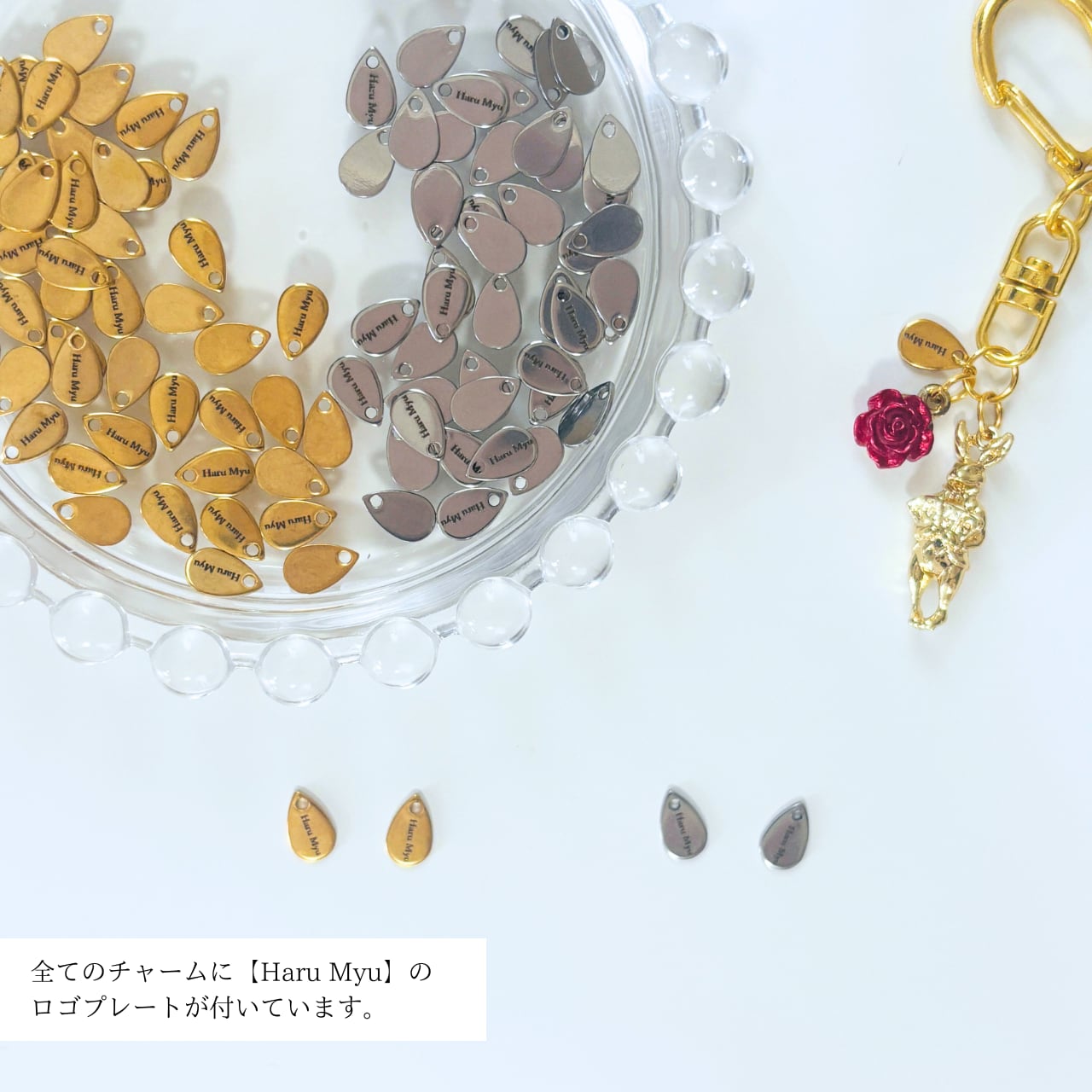 すべてのチャームには『Haru Myu』の小さめロゴプレート付き。