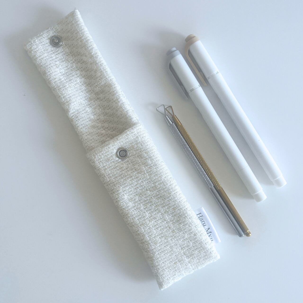 毎日使う文房具を優雅に収納できる、大人の布小物です。