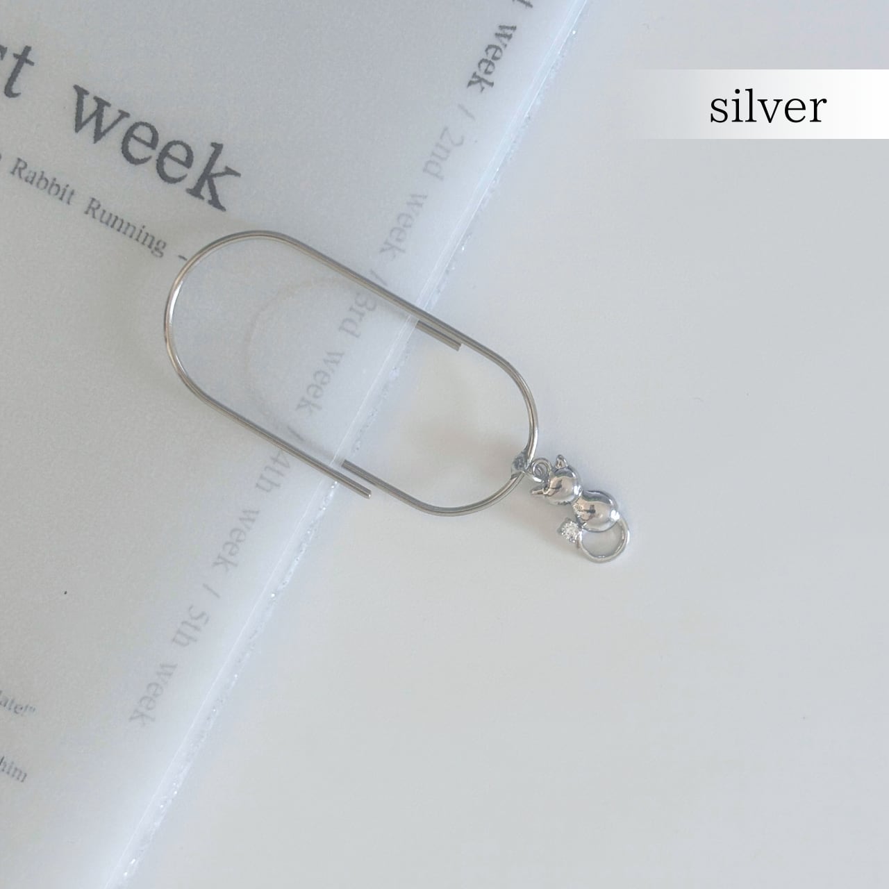 ネコの後ろ姿をかたどったシルエットチャーム付きクリップ。